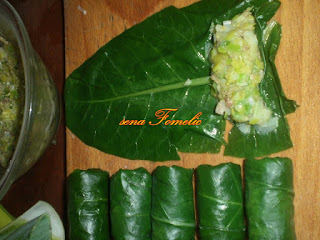 ->Žličicu ili više nadjeva stavljati na svaki list i umotati male paketiće ...kao sarmice!