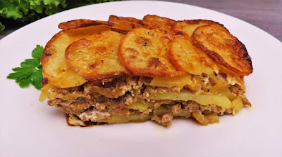 ⬇SASTOJCI / INGREDIENTS⬇ 280 grama luka biljno ulje 600 grama mljevene junetine sol i papar 1 i pol žličica slatke paprike u prahu 1,2 kilograma krumpira 2 jaja muškatni oraščić 500 mililitara mlijeka 50 grama masla pekač - 22cm x 28cm ______________________________________ 280 grams of onions vegetable oil 600 grams of ground beef salt and pepper 1 and a half teaspoons of sweet pepper powder 1.2 kilograms of potatoes 2 eggs nutmeg 500 milliliters of milk 50 grams of butter baking pan - 22cm x 28cm